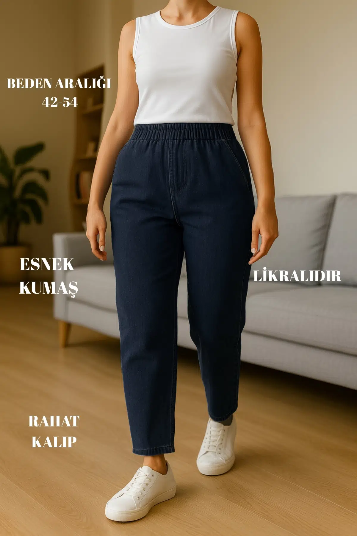 CEDY DENIM - Büyük Beden Likralı, Beli Lastikli Jean Pantolon C636