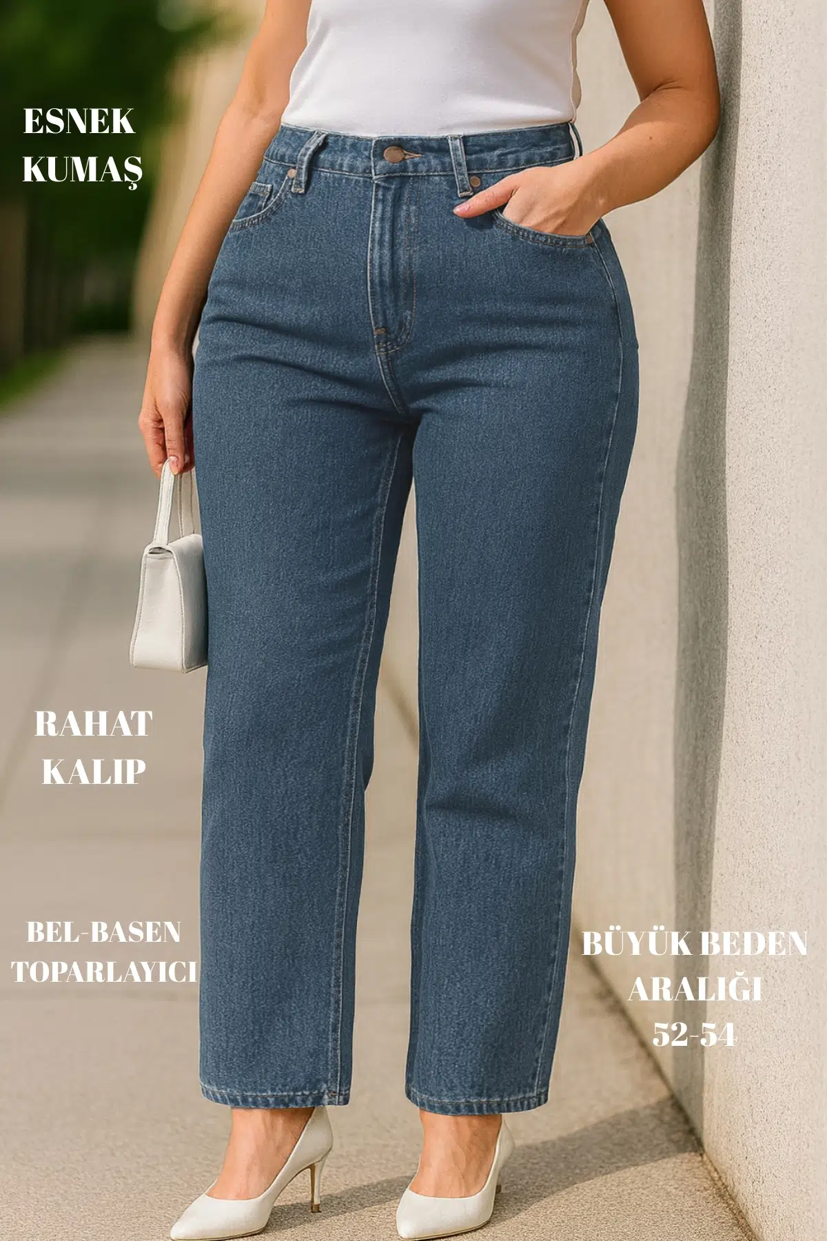 CEDY DENIM - Kadın Büyük Benden Boru Paça Yüksek Bel Regular Fit Likralı Pantolon C626