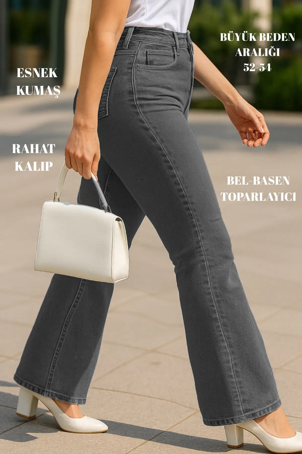 CEDY DENIM - Kadın Büyük Benden İspanyol Paça Yüksek Bel Regular Fit Likralı Pantolon C628