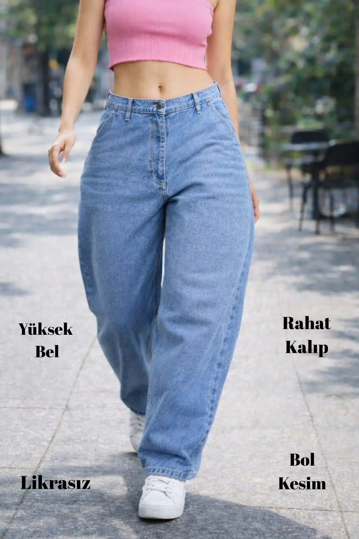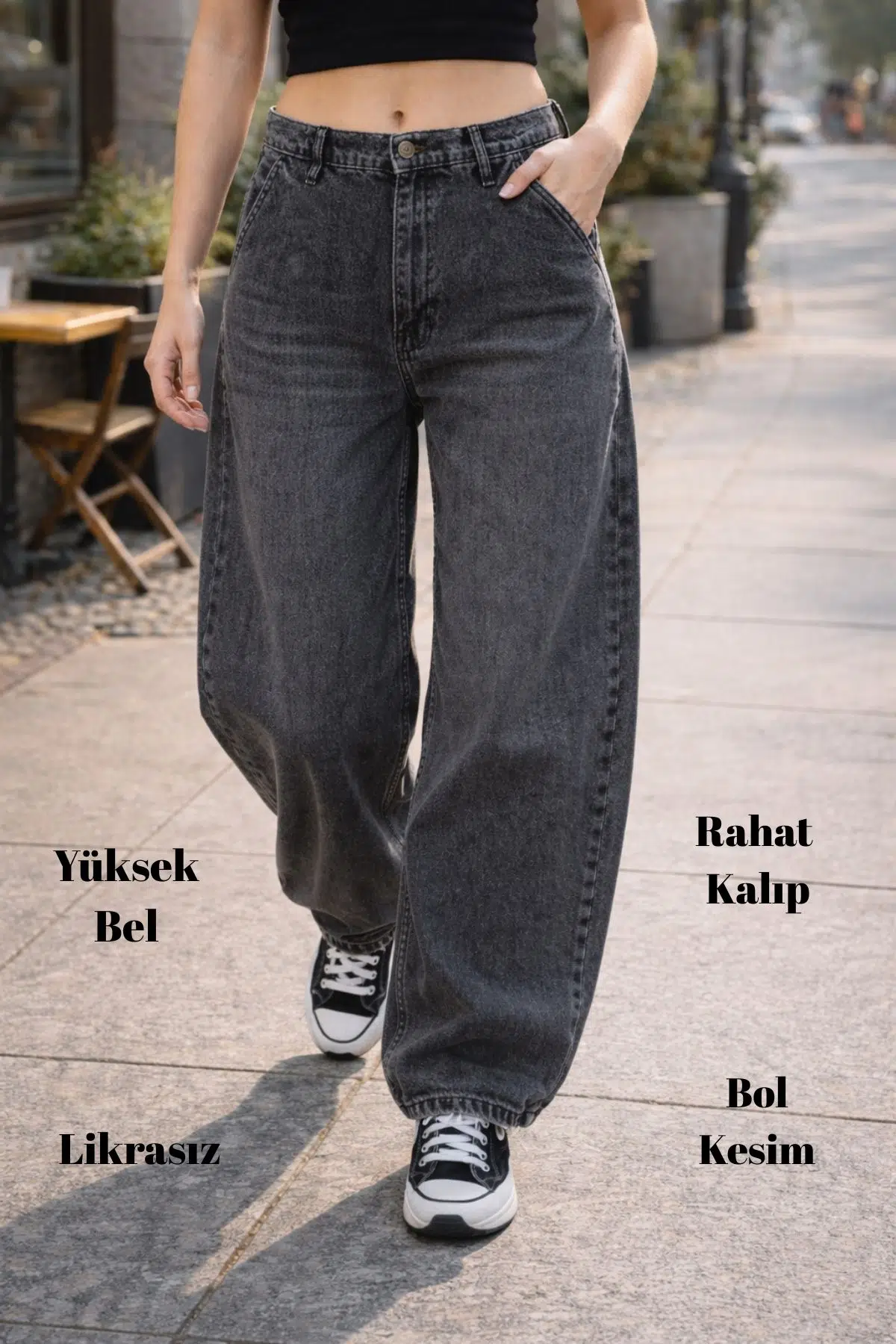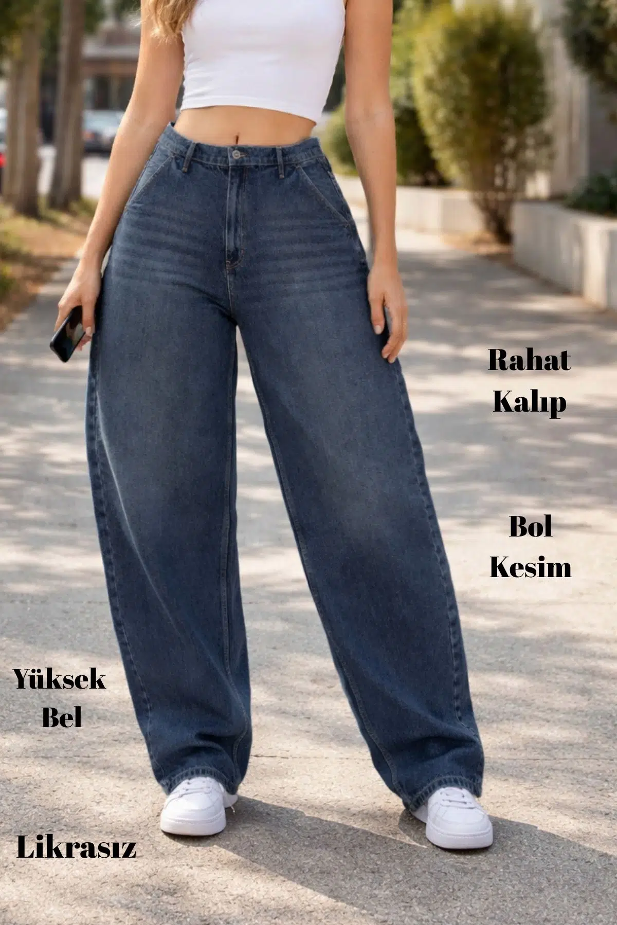 CEDY DENIM Kadn Yüksek Bel Baggy Skater Jean