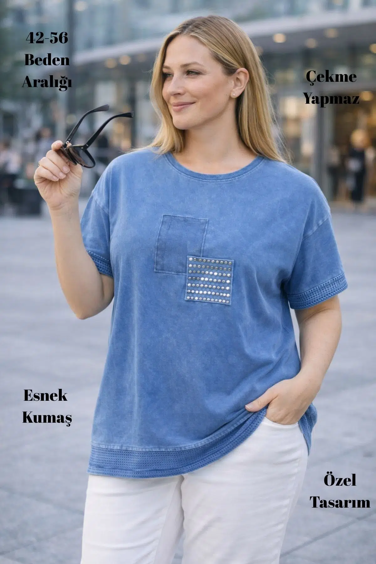 CEDY DENIM’in modern ve rahat stil anlayışıyla tasarlanan bu özel tunik tişört, günlük şıklığı ve konforu bir arada sunar. Denim görünümünden ilham alan yıkamalı kumaş dokusu sayesinde hem spor hem de şık kombinlere kolayca uyum sağlar. Günlük kullanım için tasarlanan rahat kesimi ve tunik boyu ile gün boyu konfor sunarken stilinizi de ön plana çıkarır.